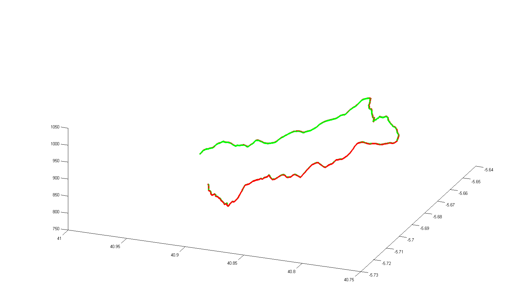 So I fleshed out a little bit of the idea from the previous post. Basically all this is right now is something that takes GPS data (longitude, latitude and elevation) and estimates the edges of the road. Here’s a nice picture. I still need to do some unit conversion stuff, actually have it be able to parse .gpx files from scratch, and generate the terrain map itself, but it looks cool for now.